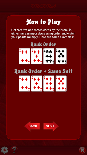 - Get creative and match cards by their rank (or value) in either increasing or decreasing order only. Earn more points when the ordered cards share the same suit.
