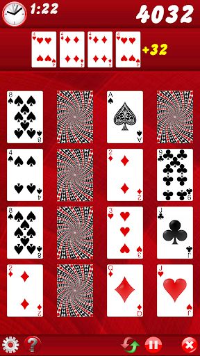 - Earn points by matching 4 cards on the same column in any of the 4 available columns.