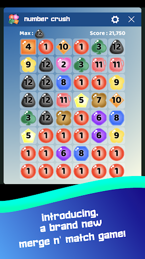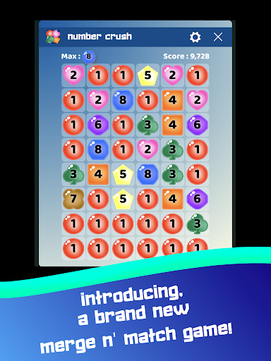 Number Crush --- We all enjoy playing match 3 games and as gamers we need more of them. Number Crush is designed to follow similar strategy but with number matching and merging at the same time. On the board you will have several numbers, you can add the adjacent numbers to merge. When you have the same quantity of adjacent numbers as the number you are aiming to merge, the sequence pops.