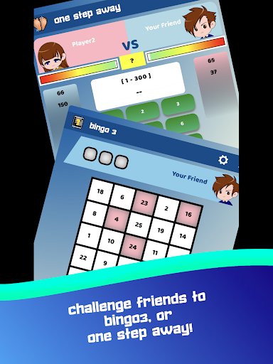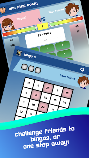 Bingo 3 --- This PVP game requires a balance of skill and luck. The aim is to make 3 lines while outwitting your friends. Players are given one random board each and they compete against each other to make 3 lines first. Invite a friend and play in Game of Numbers!
