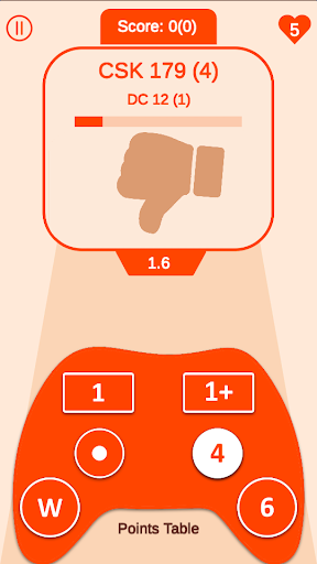 • There are only six items to predict- Dot ball, 1 run, 1 Run, 4, 6 and W (Wicket). There is a “Points table” that you can refer for how many points you would score for a right prediction. You can refer to "Points Table" to understand how scoring works.