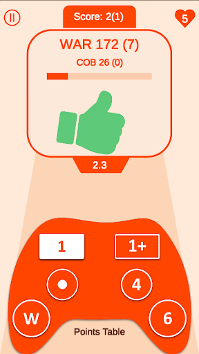 • Once you are in a game, you can predict ball by ball outcome and build your own innings/score.
