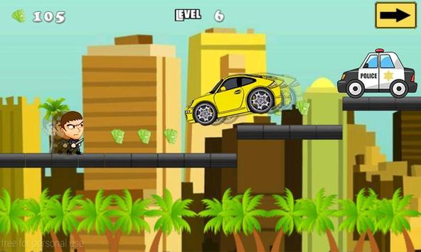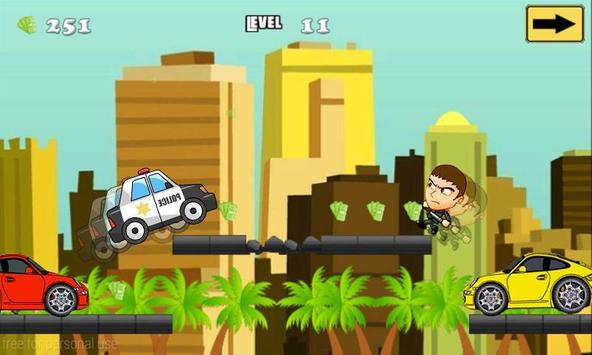 Be aware of police cars on the road, jump over them and keep collecting cash. Also, be sure to avoid obstacles like other autos and mobsters on the road to win more high score.