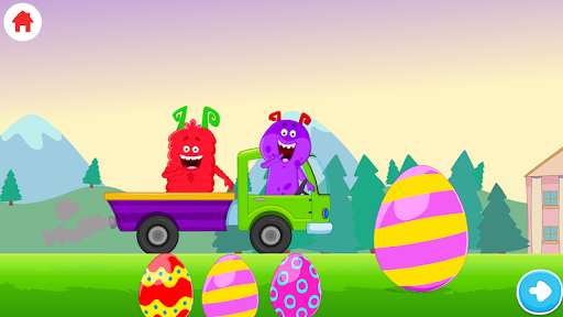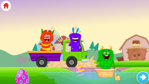 Go on a ride with the chomping monsters in their truck and pop eggs 🥚 to feed them.