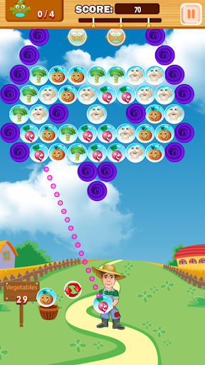 Shoot to match at least 3 vegetable bubbles of the same color.