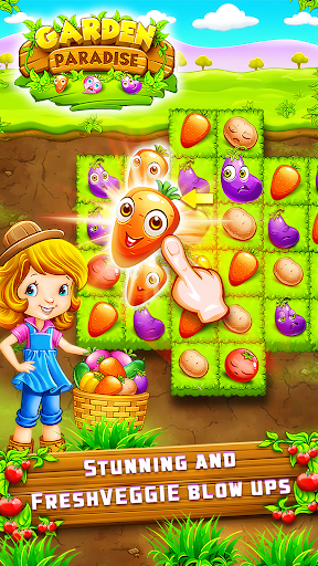 Be a superhero in garden farming and collect fruits garden mania and vegetables by match 3,4 or match 5 of the same properties. Splash and plunge the carrots, tomatoes, beetroots, and more. Plant and harvest carrots, vegetables like a mast and stand up among the super fruit heroes in this paradise.