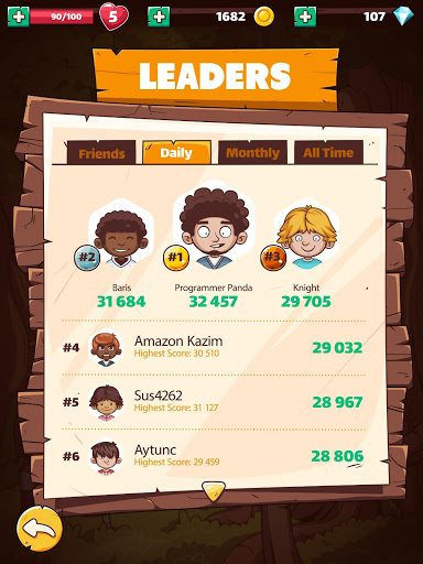 - Do you want to be a leader? Gem Crush is listing the leaders daily, weekly, monthly and global. You can get a score from 30 to 100 every single win game and you can win from 0 to 30 every single lost game. Just focus on competition.