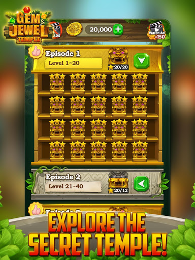 Gem & Jewel Temple is a classic match 3 puzzle game with exciting new block blast puzzles. Quest into the Gem & Jewel Temple hidden deep inside the jungle and discover the treasure and riches hidden within. Match, crush, and blast gems and jewels in fun and clever new matching games and puzzles to collect stars and explore the temple.