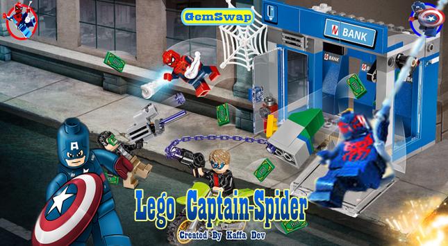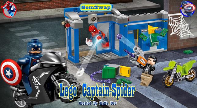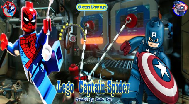 GemSwap For Lego Captain-Spider (Captain America And Spider Man ) is a puzzle game for swapping 3 gems or more gems,fun game with background Lego Spider Man And Lego Captain America.