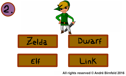 Features: -50 unique questions -Sometimes the answers are not in the alternatives -Only 2% of people finish this game