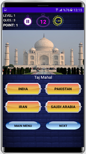 Geograpy quiz game will help you learn the countries all over the world, flags of countries, capital cities and famous landmarks, iconic places of countries.