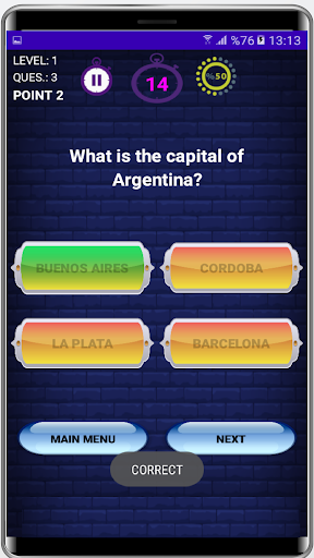 Geography Quiz Game is a fun game for all fans and learners of geography. Download this free quiz game and answer geography questions.