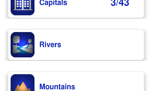 - 5 topics: countries, capitals, rivers, mountains and seas