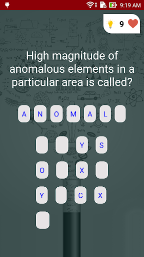In Geology and Geo-Physics Test Hard Quiz there is no multiple option to choose there is shuffled characters to answer them.