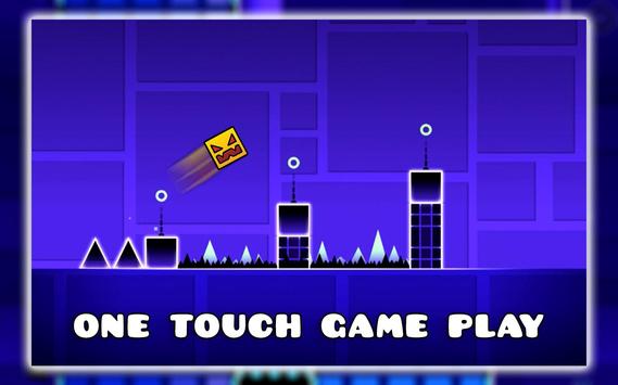 this game is easy to play, because it uses only one touch game play , your square geometry will move automatically, and to jump click one touch on screen.