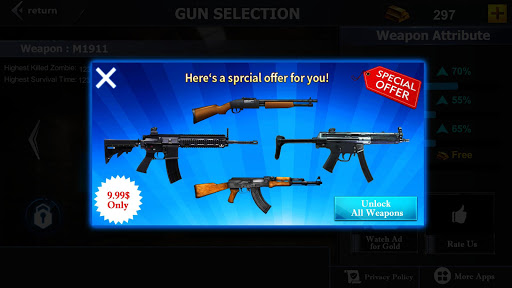 Gun store with new and latest weapons .weapons models has also being enhanced to look better. There are a lot of weapons in gun store user can unlock them using coins. If users have not enough coins then user can buy any weapons with real currency.
