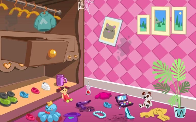 Girl dream house cleaning is kids entertainment game which have big house and different messy rooms. There is messy room selection that has different level. This Cleaning game will teach you how to clean the house. You have the rooms siting room, bed room, kitchen, shower room, dress up room and other. You selected your favorite room and cleanup the room dust, tea splash, collect garbage item and drop in basket, arranged baby toys and cleanup water splash have to much fun. You choose and play different rooms and enjoy dream house cleanup game.