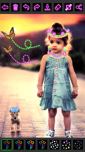 Glow Draw Photo Editor is particularly designed with super easy-to-use painting on canvas or any image. It has various bright colors and different brushes, such as glow, neon, rainbow, crayon, stars etc.