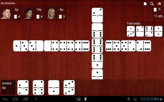 Go Domino has tons of cool features including a full view of domino trail, Click - Click option to place dominoes (default) or Drag and Drop dominoes to the table (1 finger gesture, just touch the domino and drag it to the available position on the board), game log, zoom in/out, stats box and more features and variations to come in future releases.