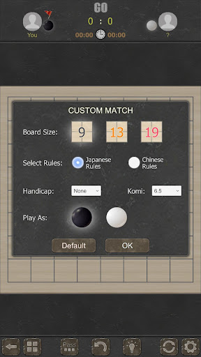 - Custom board size, handicap, komi, black stone or white stone.
