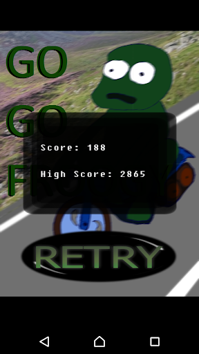 Froogy was born for high speed riding on highway. By collecting coins or jumping through obstacles his enjoyment raises but also his thirst for speed. No one knows for how long he can do it without crashing, but now you can help him. When pressing the screen, Froogy will follow your finger. When you release he will jump. Good luck and have fun.