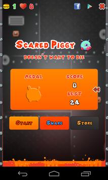 a cute and special piggy accidentally climbed into a dangerous machine of various rising platforms. The machine is pushing him upward to crush him on deadly metal spikes. Below is a lake of lava that turns the little guy into instant bacon. Falling down the machine, piggy wants to live his short, terrifying and thrilling final moment.
