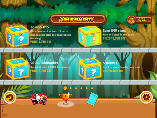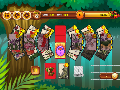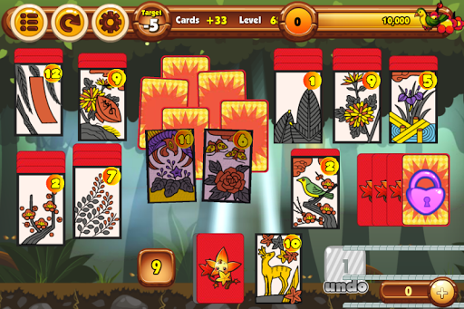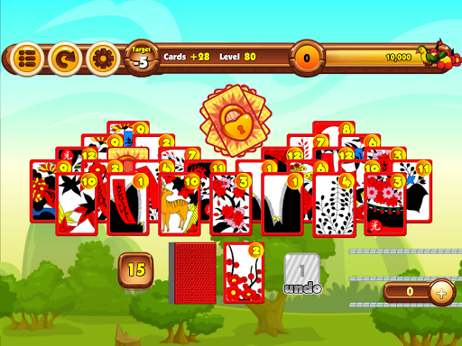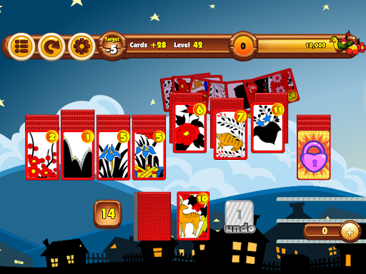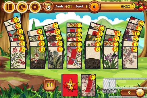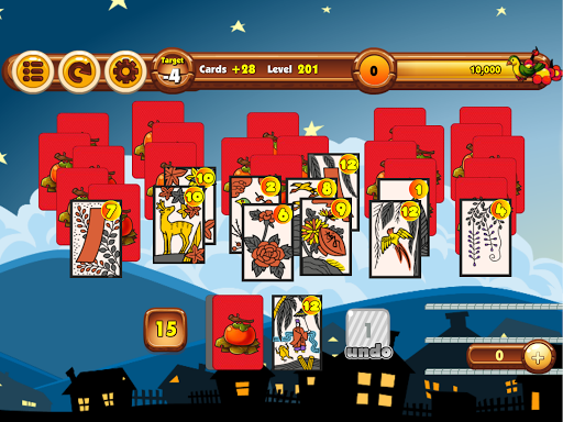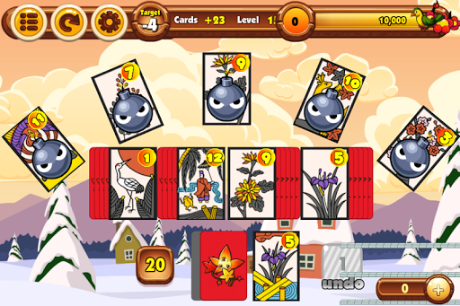 Clear all the cards from the board! Eliminate one card from the screen pile by tapping the number higher or lower than the number shown at the bottom of the screen. The cards that are left on the screen determine your score and the number of stars you will receive. No cards left gives 3 stars, under target 1 card left gives 2 stars, and 2 cards left gives 1 star, if neither of those, you have to try again! Make good use of the bombs to change the order of the numbers when you're in a pinch. You cannot undo the usage of the bombs so be careful!