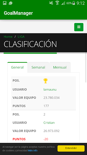 Goal Manager, the football manager where the real players results affect your own results. Prove your football and strategic knowledge , manage your team and be the best in the ranking. Challenge your friends! Who will be the last?
