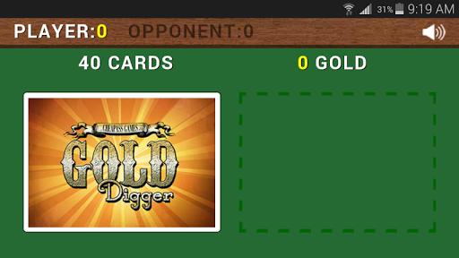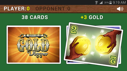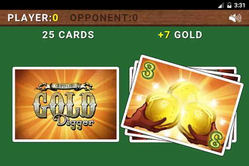 Each day you Dig in the mine by tapping the deck. If you get a Gold card, that gold is added to your hand's gold. You may stop now and tap your hand to put your gold into the Bank, increasing your final gold, or Dig for more gold.