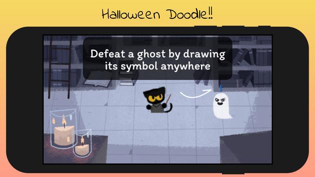 :: Halloween Doodle - Grab your wand and help fend off a ghostly catastrophe. Press play to swipe spells, save your friends, and help restore the peace at the Magic Cat Academy.