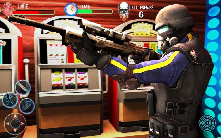Eliminate the hostile casino robbers & thief syndicate and save the hostages at the casino. Fighting robbers is the only way to rescue hostage at royal casino in armed heist games. Police shooter need to take real action against these sneaky gangsters of crime city. Police Crime alert calls you to tackle this emergency situation & to fight & win real casino robbery heist and diamond theft. A real cop combat and hostage rescue mission is about to start as vigilant cop of police battle games. Jump into this thrilling elite army combat mission with sniper scope crime city casino las vegas theft missions & robbery tasks likewise armed heist ultimate bank robbery games. Get ready for the biggest real casino robbery shootout in Los Angles crime! Enjoy the thrill being cop in FPS gameplay with armed heist real police cop hero shooting experience.