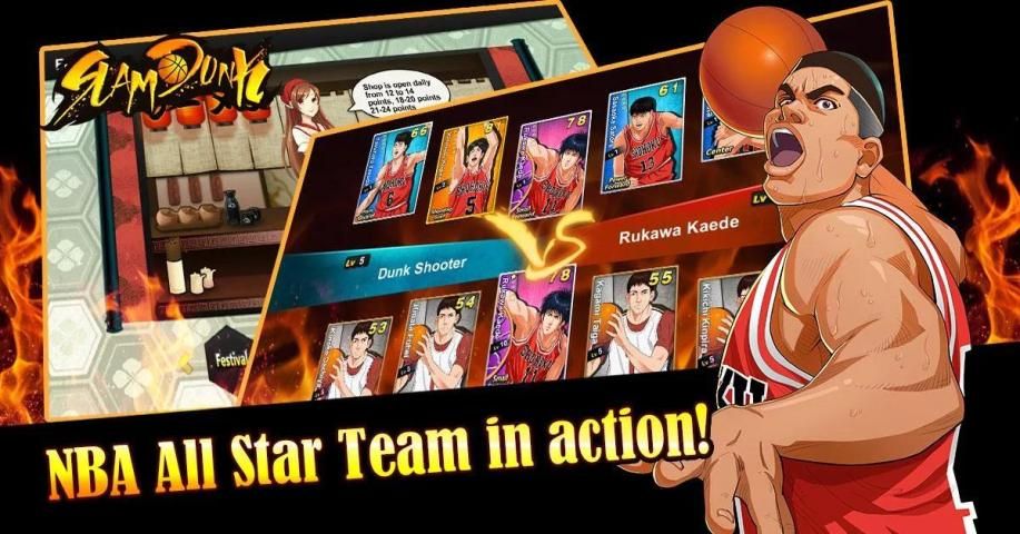 Grand Dunk Shot, inspired by the best-selling Japanese manga, is an Android online game that merges the best elements of the classic card game and RPG game. All the dunk shooters, Hanamichi Sakuragi, Kaede Rukawa, Hisashi Mitsui and Akira Sendoh, will be in action in the game!