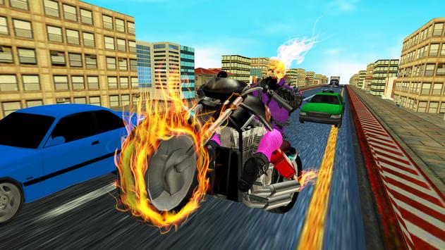 Ghost fire skull superhero rider enjoys the most stunning bike with flames and nitro to ride in evil city crimes. Press nitro, flame skull and run bike crazy stunt race with super speedy bikes. Ride a bike in thrilling bike riding game with ultimate thrilling adventure. Use special ghost fire attack to speed up bike racing speed.
