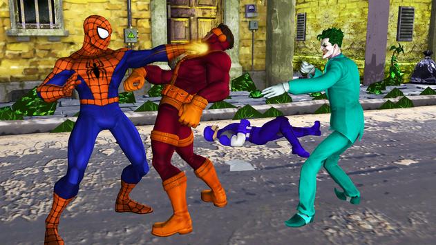 Are you ready for ultimate fighting action with your favorite Super Heroes & Super Villains in the Battle league! Welcome to Grand Injustice Superheroes League Battle where your kick box start and check your modern combat fighting skills and where world famous fighters like Spider hero, Goku hero Monster Hero, Iron hero, Flash Hero, Laser Hero, Wolf Hero, Bat Hero, Joker Hero and Captain Hero came face-to-face one on one in a street of the grand city. This game is different kind of fighting game in which you have to kick, punch, fight, block and use other modern kung Fu techniques to knock out your opponents. Be ready for Action-packed gameplay with different combat style like Ninja fight, Martial Arts, Kick box, Kung Fu and many others Futuristic Modern Techniques. You have choice of selecting you heroes between goku hero and spider hero Grand Injustice Superheroes League Battle Game in real Fight Final City street Battle. Upgrade your Super Heroes with special powers as you fight your way through the game. Become a champion by killing enemies.