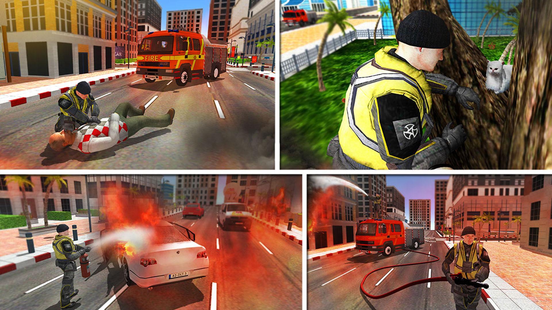Focus on your duty and prove yourself #1 firefighter rescue team member. Fire trucks are always ready to be driven by you. You only need to get focused and listen to each objective clearly. Use fire extinguishers along with water, or any means to extinguish the fire. After saving people, some of them will be injured, so you need to perform some rescue missions as well. Drive them back to the nearest hospital and return to the headquarters. Emergency locations will present a challenge of blazing disasters. Grab your hose, race to save lives, and display the courage of a real grand Firefighter superhero is about parking and driving in a modern crazy city, and then full duty driver fire truck lite rescuing innocent people with your fire brigade’s vehicle free game. Drive your emergency fire brigade truck fast and save pets, stop water and gas leaks, Electric short circuit and complete many other dangerous rescue missions. Grab your hose and slap on your combat boots; fires don’t wait for anybody.