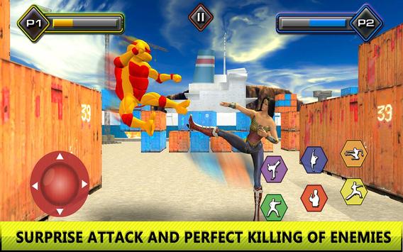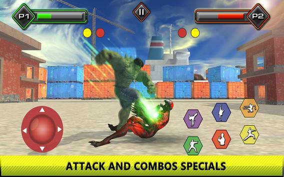 kicking, blocking and super kicks to take down opponents by superheroes in battle arena. This Action-packed gameplay having different combat style like BJJ, Ninja fight, Martial Arts, Muay Thai, Kick box, Somu king, Sambo and many others dodging, rage, cuts, knockouts, technical knockouts with epic battle. Choose action ninja super heroes or flying super hero fighter in amazing real fight final city battle. Knockout your enemy using super power punch on the face.