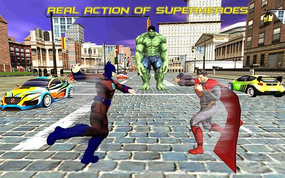 Are you ready for the GRAND SUPERHEROES LEAGUE: CLASH OF JUSTICE, thrilling adventure of Grand Superheroes league? This is the heroic battle war of Superheroes with kingdom league enemies. Now play this justice superheroes game, an excellent amalgamation of all superheroes like spider hero, superhero man, justice bat hero, flash speed hero, arrow hero bulk, and all other superheroes. Super skilled legends Superheroes league fighters like Wonder Girl hero, Bat Girl hero legend, Mr Hero, Iron hero and Monster Hero came face-to-face one on one in this superheroes fighting game. This fictional super heroes league game will become a benchmark in super hero games like flash fighting games and super hero man game where multi superhero fight with each other but in this justice superheroes game you are going to witness punching, kicking, blocking and super kicks to take down opponents. Be ready for Action-packed gameplay with different superheroes combat style like MAGICAL SUPERHERO POWERS ,MMA, BJJ, Ninja fight, Martial Arts, Muay Thai, Kickbox, Sambo and many others dodging, rage, cuts, knockouts, technical knockouts. Enjoy an epic battle, choose and collect different heroes, in this first segment of GRAND SUPERHEROES LEAGUE: CLASH OF JUSTICE.