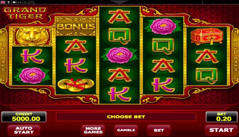 The Grand Tiger slot machine invites you to travel around China. The slot allows you to get up to 250 credits for a spin and increase your winnings in a risk game. The Bonus inscription brings the largest payouts and gives you from 10 to 20 free spins of reels. A wild symbol of a tiger allows you to win with an enviable frequency.