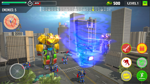 Enjoy Grand Tornado Robot Transforming: Real Robot Wars with a blend of superhero & robot transforming games features. Do you have any skills of robot shooting games where a mech warrior fight against mech robots? US Police is not able to agitate against enemies in flying robot games. Robot transform in mech battle city is going to be in danger, so upgrade your superhero into new robots for the futuristic robot battle in best robot games. The future robot is coming to crusade versus mech robots and crazy robot tornado fight with real robot simulator. Space robot warrior wants to destruct city peace in warrior robot battle games with superhero simulator and tornado attack. So jump into futuristic robot transforming games for robotic battle and robot transformation with extreme fun of war robot games and future robot shooting games 2019. Multi robot is coming to ruin the country so be ready for superhero fight with the monster robot to demolish their city crash evil plans in this robot transforming games.