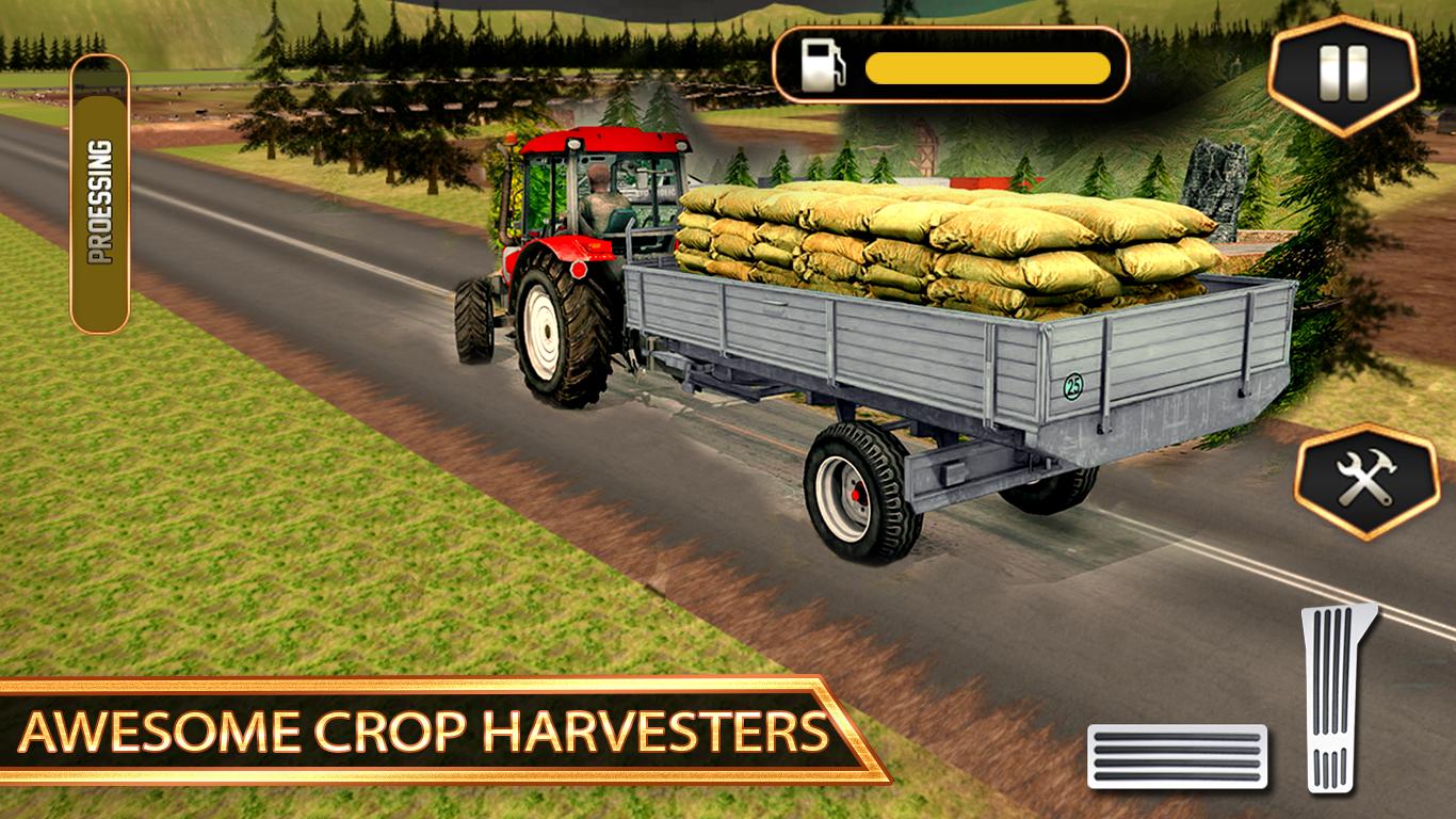 Welcome to the realistic world of Farming Sim. Being a successful farmer today requires knowledge of advanced technology and operation of many trucks and machines like farm tractor machines, heavy cargo truck driving, euro farm tractor etc. Immerse into a huge open world of your modern farmland and cultivate or harvest multiple types of crops such as sugar beet, potatoes, wheat, canola, corn, rice, cotton, and sunflower. Field Plowing, pesticide spraying into the fields, watering the fields, growing the wheat, cotton and rice crops and other farming activities are part of this Grand Tractor Farming Sim 3D - Tractor Farmer 2018 game, Tractor Driver simulator. Transport wheat, rice and animals to the grain market and city market and sell. Be careful while driving on bumpy roads of the village. Farming truck driver simulator, farming forage plow harvester, wheat farming tractor simulator, farm tractor trolley game, little farmer big farm, little farmer big farm, cow farming harvester simulator, farm silage transporter truck.