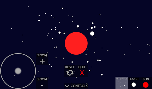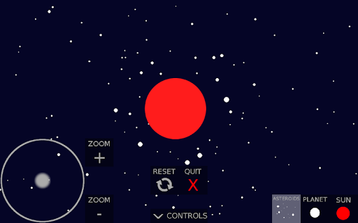 Create a sun, spin some asteroids around it, and watch them collide and form planets.