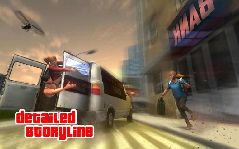 Great Thieves Action : Gangster City Crime Story is an open world 3D game as the user gets the chance to be ultimate gangster and rule the city. It is a fantasy world game as this game features a huge metropolis city where the user has to battles not only other gangs but the city police force. User can drive tanks and aircraft during the cop chase to escape. The game is mainly inspired from grand city theft games where the player can go anywhere drive any kill or may kill anyone. This game is limitless as the user can explore the whole city the way he/she wants to explore. Take down dangerous gangs and claim the control of the city defeat various gangs like mafia, Yakuza, Cartels, 18th street gang, Blood gang, Aryan Brotherhood, Los zetas and various deadly gangs. This is story based shooting adventure game as the user gets the real chance to be the ultimate gangster of the city. User join the gangs but eventually betray the gangs. The user can drive various cars and multiple motorbikes around the city. The open world city has multiple shootout challenges and gang fights which really test what the user is made off.