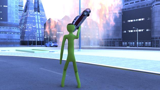 The green stickman is a very aggressive monster and has problems with self-control. The stickman has become a very strong guy then he fell into a big barrel of some kind of chemicals and became a green monster. After that the stickman superhero had become a very strong monster, he can lift any vehicle, even tanks, and planes with one hand. He obviously is able to do it even with one finger, but the green guy does not have any of them. The character is a real monster, he will destroy anything in this city and you will be controlling that crazy rampage.