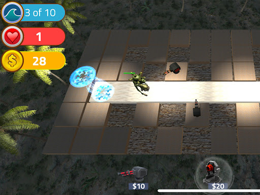 At your disposal is an expanding armory. We recommend using missile launchers against herds of enemies, or frying tough attackers with laser beams. Some of us may even argue that throwing a syrupy glue on fast runners is almost always a good idea.
