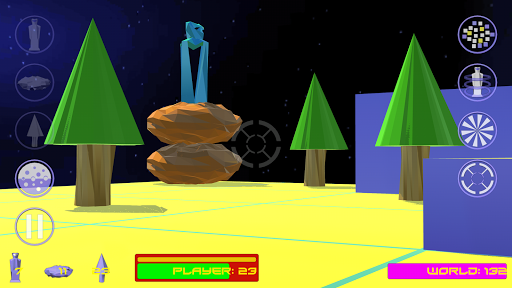 Your drone cannot rotate while in this mode but can select tiles, trees, rocks and other drones before clicking other icons to effect the energy transfer (e.g click the crosshairs icon, select a tile then click the rock icon to create a rock on the selected tile).