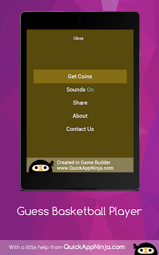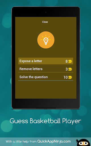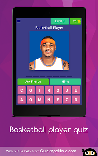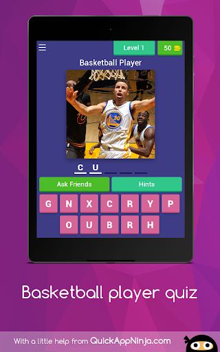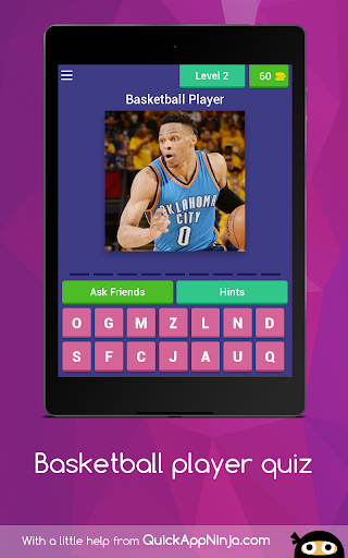 Do you like basketball ,this nice game for you. The game consists to guess the player on picture and you win the coins. Otherwise , watch the video or share the game and you win the coins. The coins help you to resolve the question, if you don't have idea of the name of player.This Is very nice game and very easy .