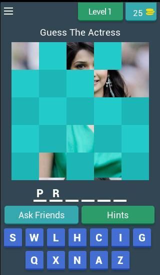 It consist of number of Bollywood actresses pictures. You have to guess the first name of the actress. It is very lightweight entertainment game. Has hints facility like show one word, Remove unnecessary word and show full answer. Even you can ask answer to your friend online. Hope you will enjoy.