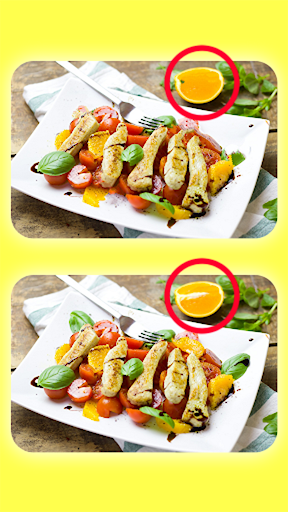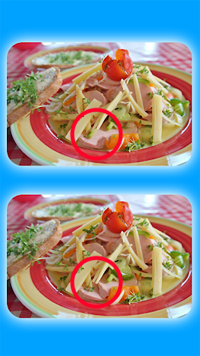 Difference Finding is a game hidden the differences between two pictures of food. Compare pictures of food find five differences and spot it. Attention test, concentration exercises with the find the difference - tasty food game.