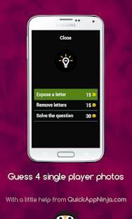 It’s time to update your mobile application. 30,000+ users downloaded Guess 4 single player photos latest version on 9Apps for free every week! And now, this app adds more functions. This hot app was released on 2018-04-02. You can enjoy the most completed function of this app.