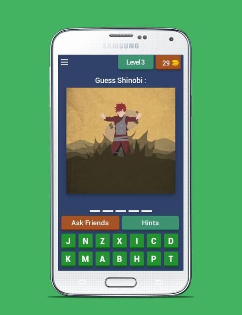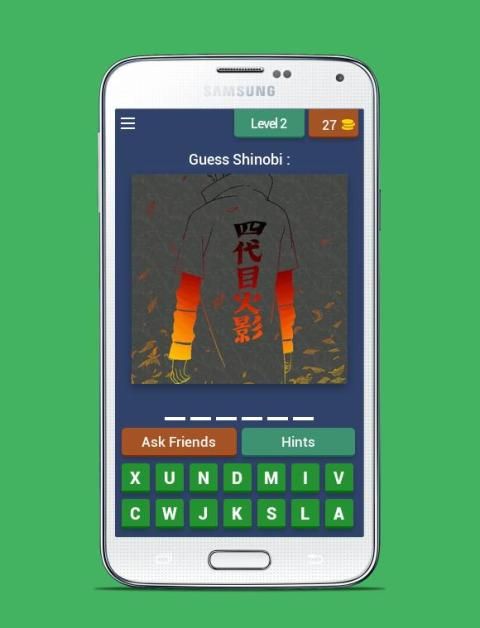 You have to guess character name Shinobi Hokage Ninja to pass each level by locating right letters at the available space.